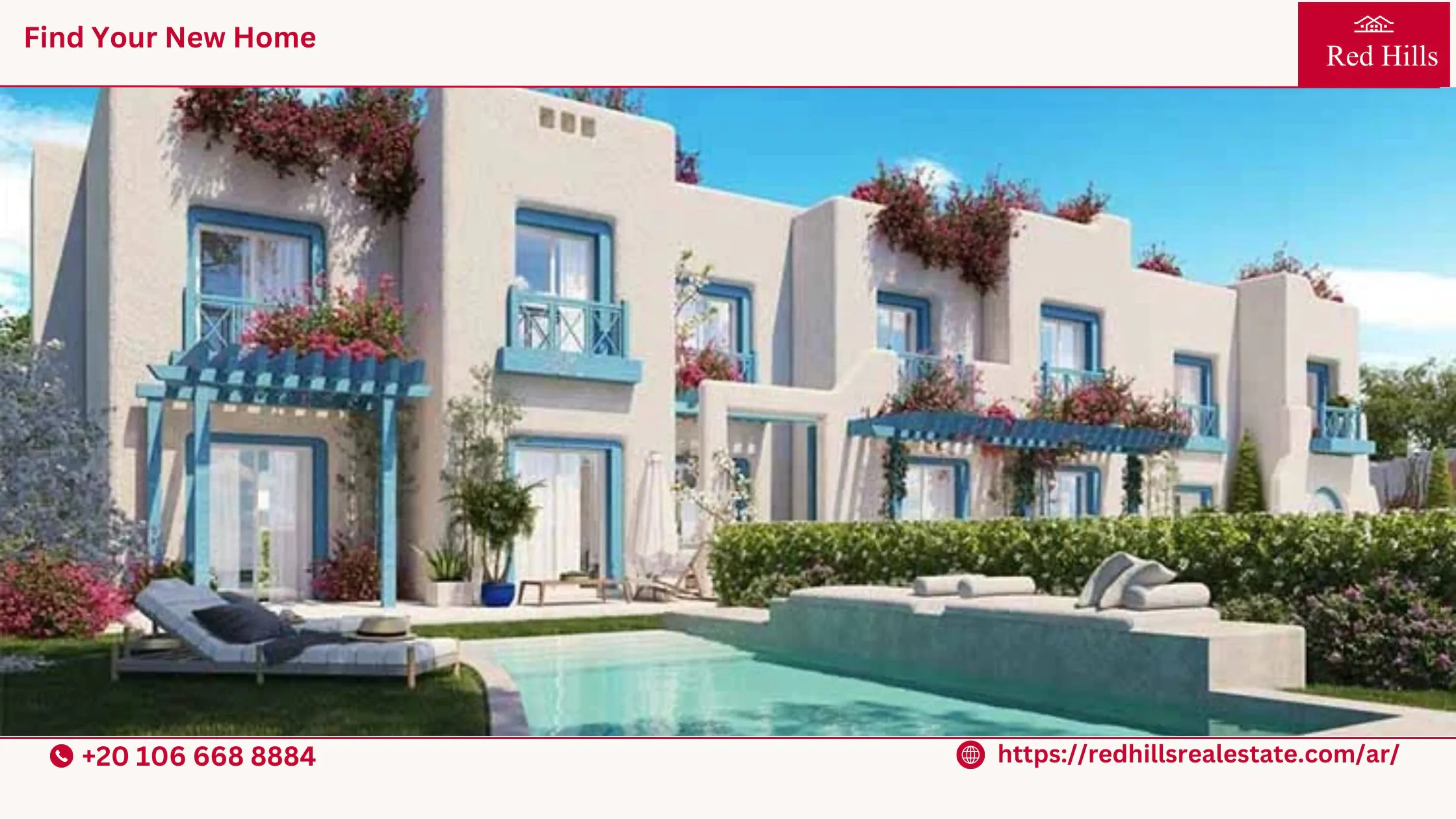 - تتميز الواجهات الخارجية للوحدات السكنية تأتي باللون الأبيض والأزرق لتُضفي طابعًا مختلفًا عن القرى المحيطة.