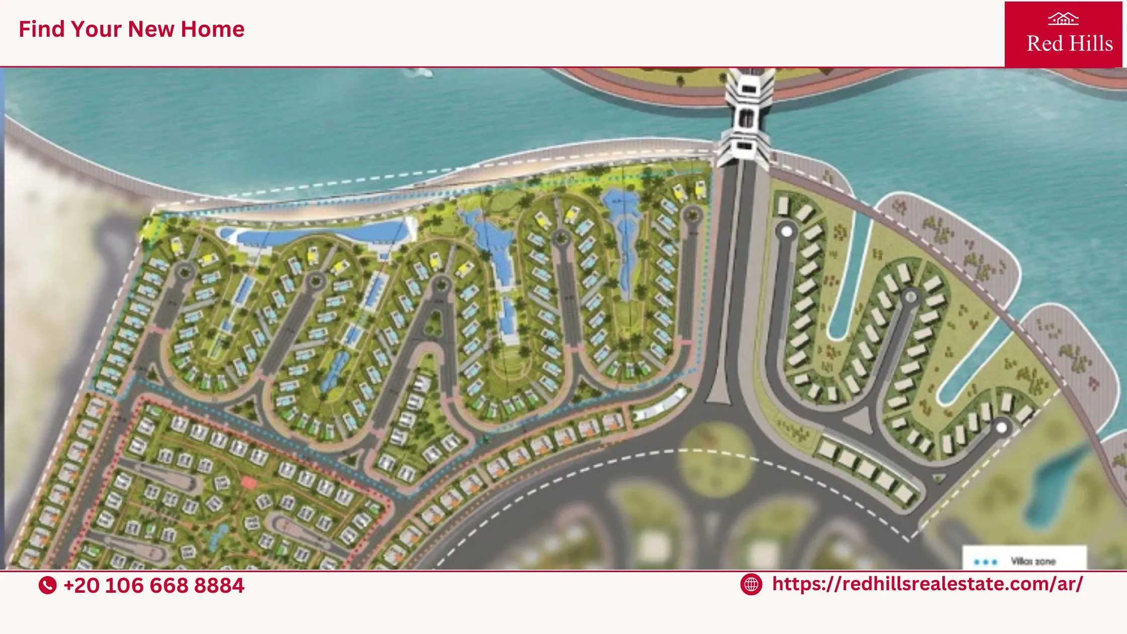 هنا ستجد نفسك أمام مجتمع ساحلي من الفلل الراقية والتاون هاوس والشاليهات بأقل كثافة سُكانية ليعزز الخصوصية التامة مع إطلالة بانورامية على شاطئ البحر أو البحيرات الصناعية.